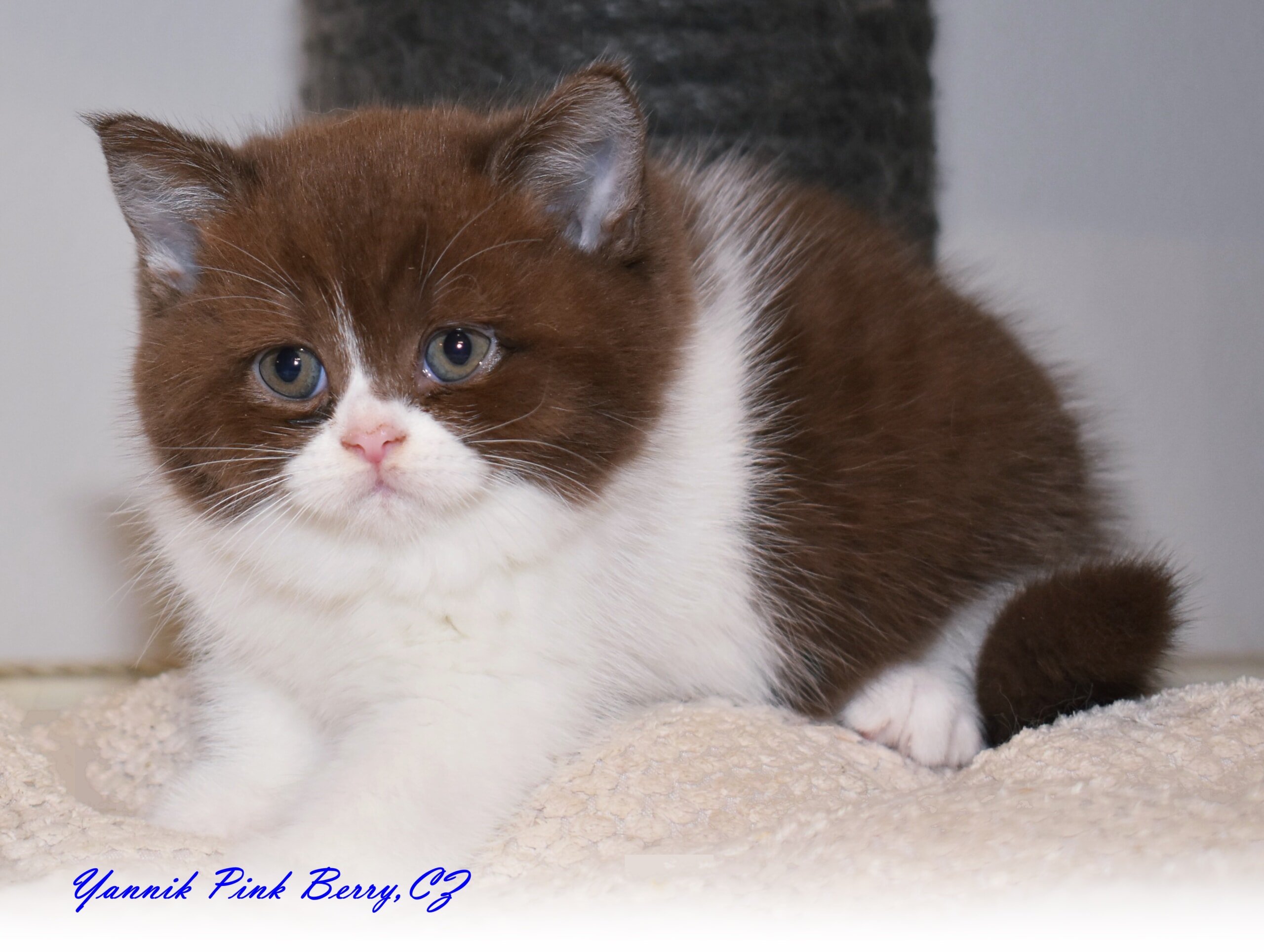 | Yannik | kocour ♂ | ![]() | Čokoládový bicolor (BSH b 03) | Rezervace |